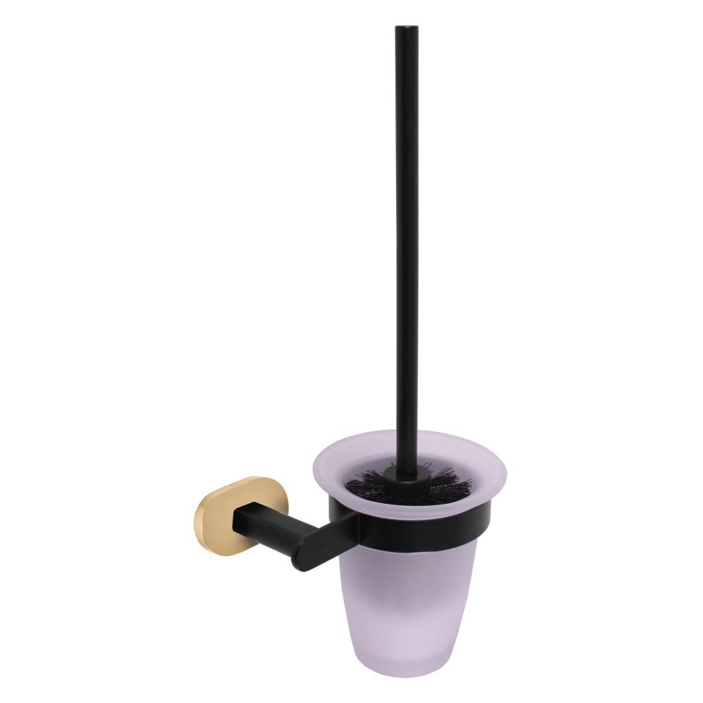 Hygienický WC set v moderním provedení se postará o maximální čistotu vaší toalety. tento výrobek je vyroben z mosazi s povrchovou úpravou černá matná/zlato sklenice na WC štětku je z mléčného skla montáž vrtáním i lepením Záruka: 15 let na funkčnost 15 let na pískované sklo 2 roky na povrchovou úpravu na štětku dle Občanského zákoníku