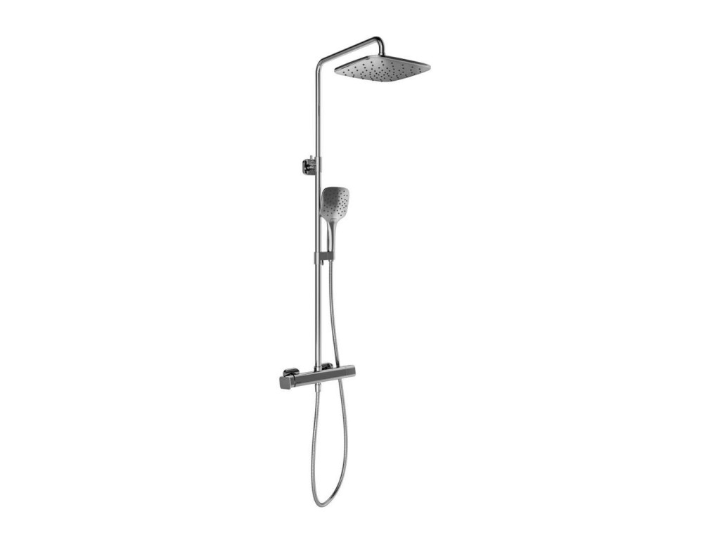 Sprchový systém TD F 098.00CR se skládá z: nástěnné baterie barva chrom nástěnná instalace rozteč 150±15 mm keramická kartuše 25 mm ovládání teploty vlevo - CoolFeel s přepínačem - ruční, horní sprcha připojení G 1/2" horní sprchy barva chrom hranatý tvar rozměr 250 x 250 mm 1 proud otočná ruční sprchy s hadicí barva chrom 3 proudy PVC sprchová hadice délka 1500 mm EasyTwist - funkce zabraňující překroucení sprchová tyč s držákem sprchy nastavitelná tyč 880 - 1330 mm posuvný držák sprchy Balení obsahuje segment pro vyrovnání nerovnosti stěny až o 50 mm.