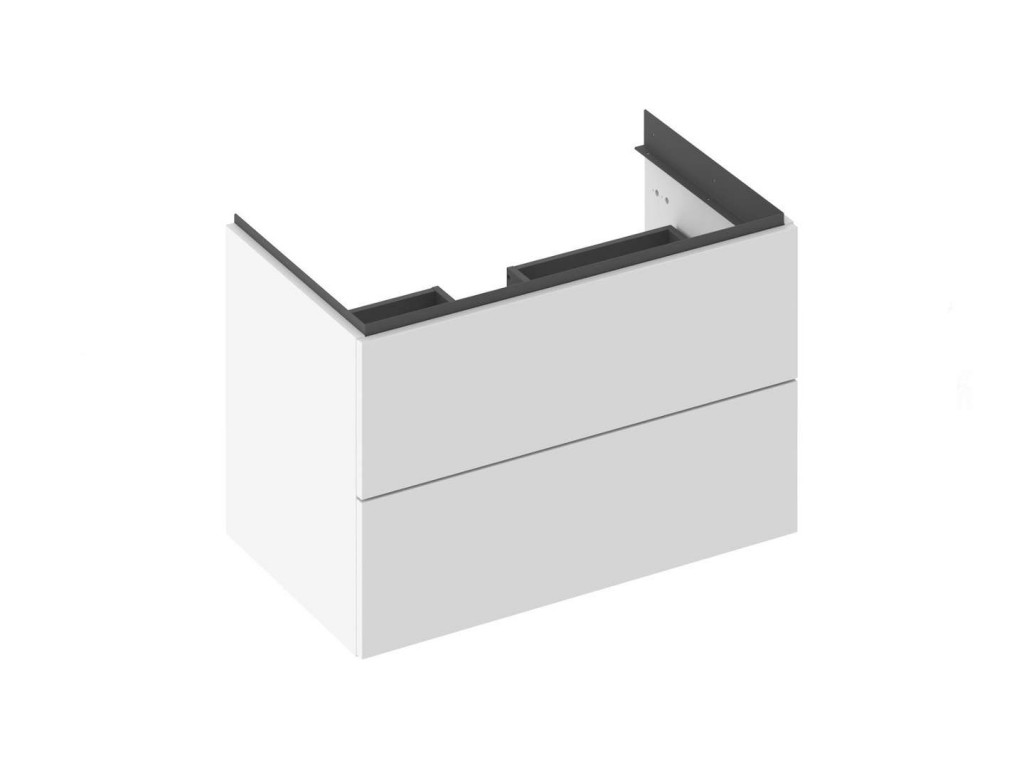 Skříňka pod umyvadlo SD Comfort II 80 barva lesklá bílá barva korpusu grafit materiál impregnovaná deska MFPB a MDF rozměry 800 x 500 x 460 mm 2x zásuvka s pomalým dovřením bez madla, nutné dokoupit zvlášť předvrtané otvory na madla instalace zavěšením na zeď dodáváno smontované včetně montážní sady Umyvadlo a baterie nejsou součástí balení, je třeba objednat zvlášť. Fotografie jsou ilustrativní.