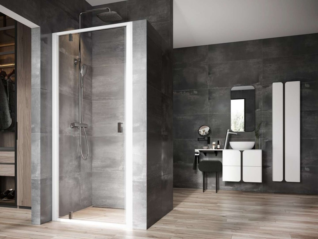 Sprchové dveře jednokřídlé NDOP1 barva rámu: bílá matná šířka: 800 mm výška: 1950 mm vstup: 510 mm montážní rozměry: 777-827 x 1950 mm výplň: čiré bezpečnostní sklo tloušťky 6 mm ochranná vrstva AntiCalc otevírání pomocí pivotového pantu rámové provedení výrobek se skládá z jednoho rovného otočného dílu, který tvoří dveře možnost otočení o 180° pro levou nebo pravou variantu otevírání dveří montáž do vyzděné niky nebo v kombinaci s pevnou stěnou NPSS instalace na vaničku nebo dlažbu použitím nastavovacího profilu NNPS lze výrobky rozšířit o 20 mm