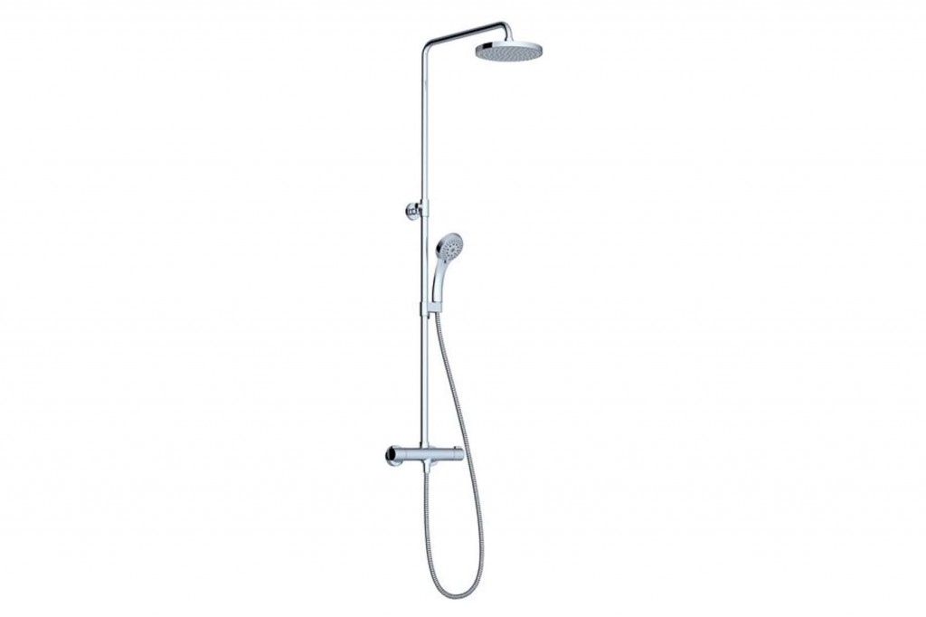 Sprchový set Termo 100 TE 091.00/150 obsahuje: termostat, hlavovou sprchu 200 mm a ruční sprchu, posuvný držák, nástěnnou tyč a sprchovou hadici povrchová úprava: chrom rozteč: 150 mm nastavení výšky umístění hlavové sprchy v rozmezí 860-1340 mm sprchová tyč je otočitelná i do stran průtok (při 0,3 MPa): ruční sprcha 12 l/min, hlavová sprcha 19 l/min přívodní připojovací hadičky keramická kartuše Coolfeel ovládání teploty nalevo zabraňuje nadměrnému ohřívání baterie na povrchu EasyClean pro jednoduché odstranění vodního kamene instalace: nástěnná termostatická baterie zajistí nastavenou teplotu teplé vody při poruše na přívodu studené vody ihned minimalizuje přívod horké vody Bezpečná baterie Blokační tlačítko na hlavici termostatu zabraňuje samovolnému spuštění teplejší vody než je 38° C. Manipulace s blokačním tlačítkem je pro děti motoricky náročná, proto vylučuje riziko opaření.
