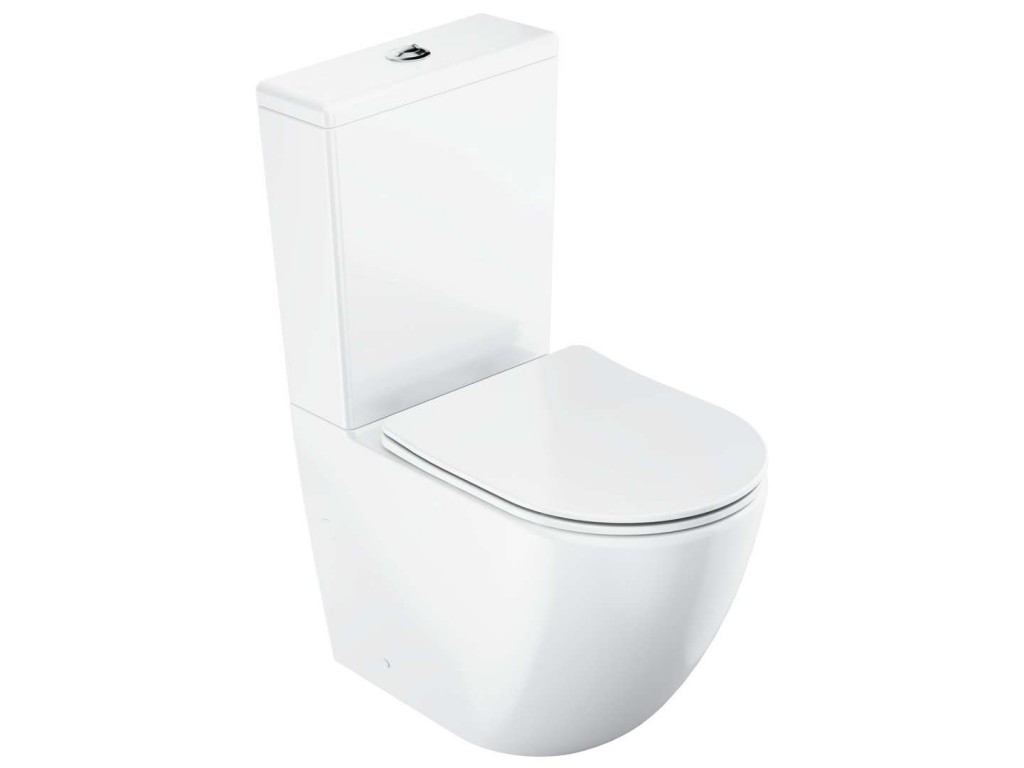 Stojící WC kombi Optima RimOff barva bílá materiál sanitární keramika rozměry 380 x 605 x 825 mm bez splachovacího kruhu - RimOff vario odpad - možno připojit na spodní i zadní vývod včetně sedátka s pomalým sklápěním SoftClose snadno odnímatelné sedátko včetně splachovací nádržky s mechanismem Geberit dvojí množství splachování