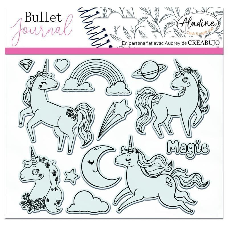 Gelová razítka s roztomilými motivy jednorožců. Využijete je na dozdobení diářů, výrobu přání, vzkazů, drobných dárků. Razítka se hodí na papír, při použití razítkovacího polštářku na textil s nimi můžete razítkovat také textilní polotovary. Grafika raítek vyniká i v hmotách: vyzkoušejte keramiku, samotvrdnoucí i modelovací hmoty a polymery. Gelová razítka se používají se s akrylovým blokem. Razítkovací štoček přilne na akrylový blok a vytvoří zcela průhledné razítko: přesně tak vidíte, kam razítkujete. Po použití razítka otřete vlhkým hadříkem a vraťte na plastový plát. Praktické balení pro snadné skladování.