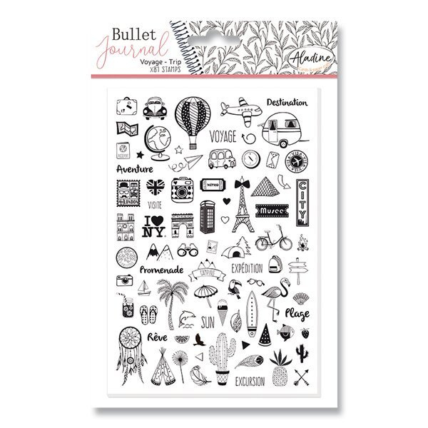 Originální razítka k dozdobení, dotvoření, či výrobě vlastního diáře. Edice na cesty. 81 ks. Celkový rozměr produktu: 19,5x13,5 cm.