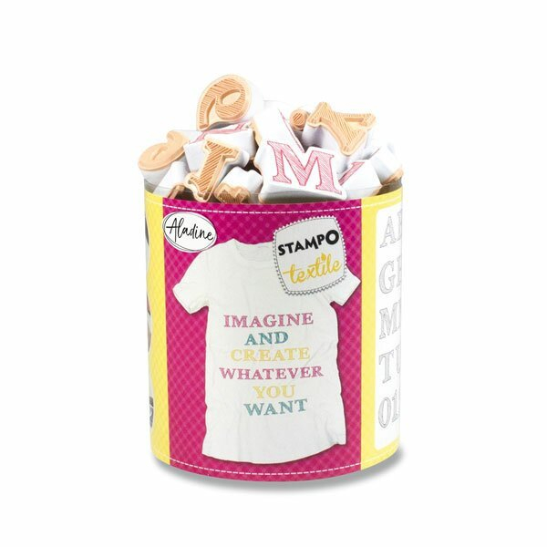 Razítka na textil. Sada obsahuje razítkovací polštářek s textilní barvou. Narazítkované motivy důkladně zažehlete, praní na 40C. Razítka po použití umyjte jemným kartáčkem a vodou.