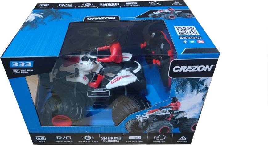 RC čtyřkolka 1:14 – adrenalin, kouř a světla! Tato RC čtyřkolka o velikosti 1:14 přináší zábavu na plné obrátky! S nadrozměrnými pneumatikami zvládne každou terénní výzvu, navíc má světelné efekty a vypouští kouř. Skvělá zábava pro všechny dobrodruhy! Max. rychlost: 12 km/h Dosah ovladače: 25 m (2,4 GHz) Provozní doba: až 25 minut Nabíjení: 3,5 hodiny Kouř: Otvor na vodu pro efekt kouře Perfektní pro všechny, kdo mají rádi akci, terénní jízdy a světelné efekty!