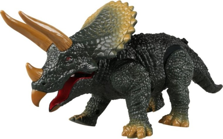 Dinosaurus Triceratops na dálkové ovládání, který se pohybuje i vypadá jako opravdový. Triceratops se pohybuje vpřed, vzad, má pohyblivou tlamu, vydává zvuk. V balení naleznete také ovladač. Hračka vyžaduje 2 x AAA baterie, nejsou součástí, ovladač vyžaduje 3 x AAA baterie, nejsou součástí. Infrared, dosah ovladače až 8 metrů, hrací doba 30 min. Vhodné pro děti od 6ti let.