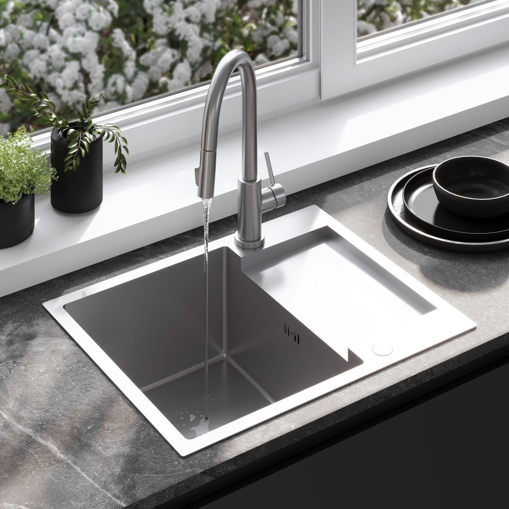 Sada dřezu s přiloženým příslušenstvím je skvělou volbou pro zákazníky, kteří ocení kvalitu a zpracování. Nadčasový tvar, použití prvotřídních materiálů a technologií, skvělý design a kompatibilita použitých řešení zaručují dokonalý výsledek.