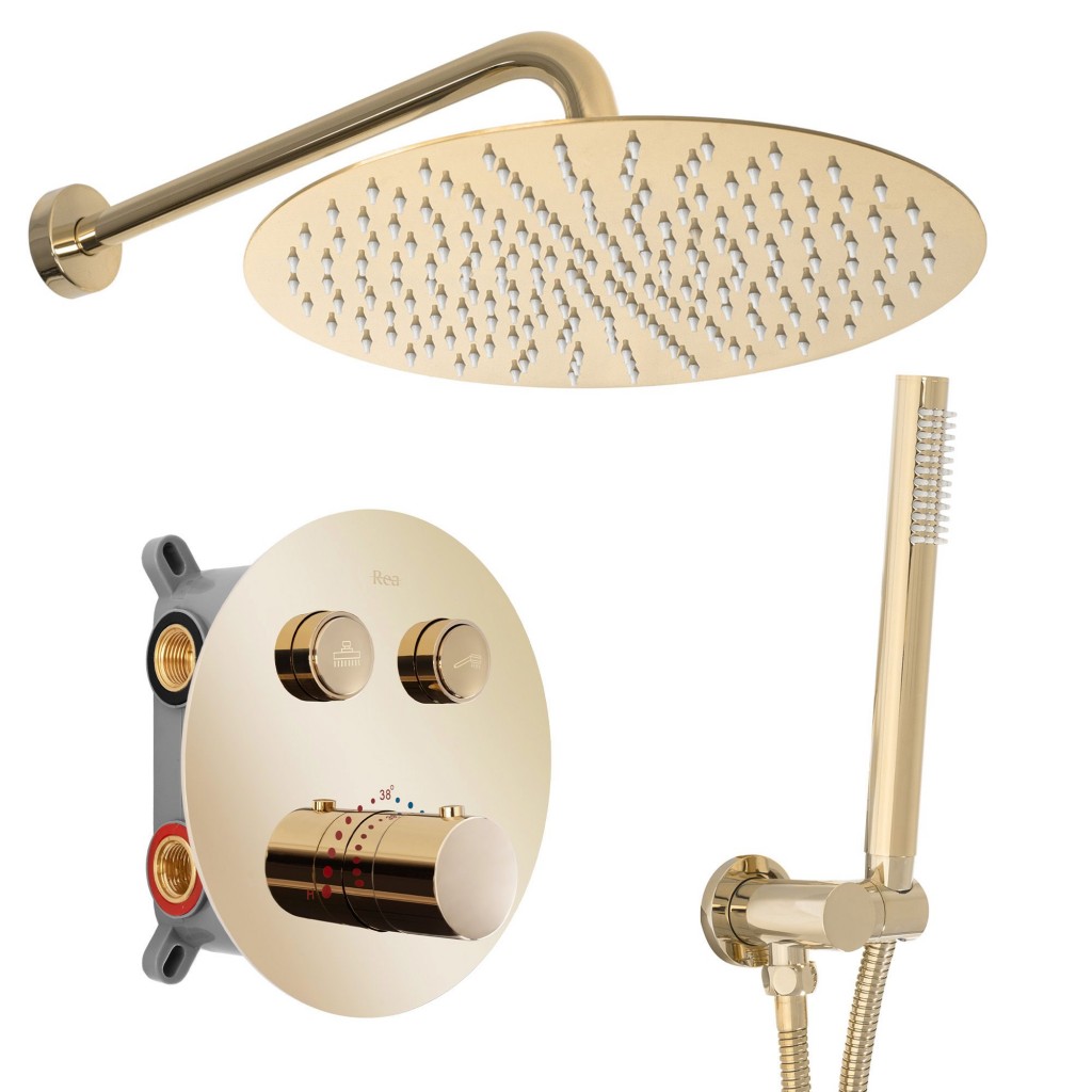 REA - Podomítková sprchová sada LUNGO - zlato + termostat + BOX REA-P8550