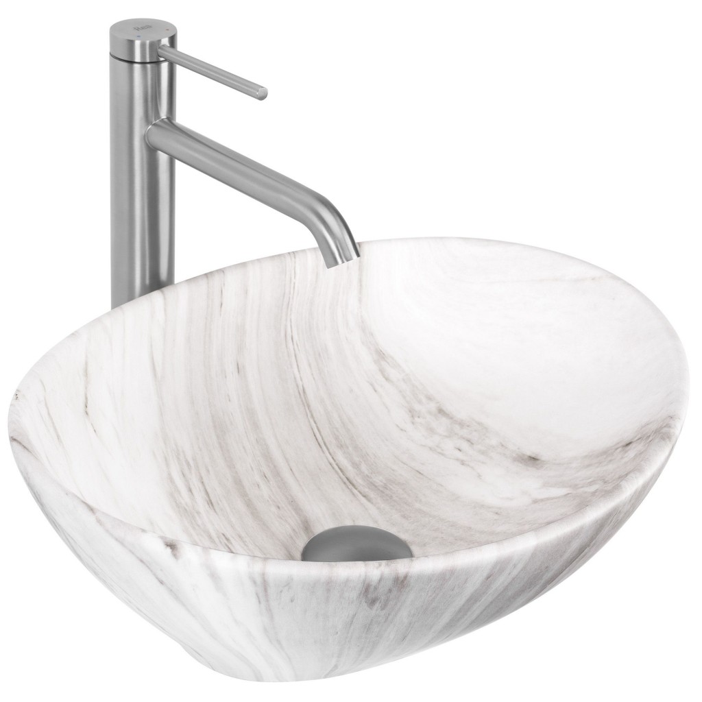 Představujeme Vám moderní nové umyvadlo na desku série Rea Sofia. Umyvadlo oválného tvaru je vyrobené z vysoce kvalitních materiálů. Díky svým vlastnostem splní požadavky všech lidí, kteří požadují dokonalé vlastnosti a parametry dle svých představ. Jedná se o perfektní model pro zákazníka, hledajícího především funkční, ale hlavně jednoduché řešení. Umyvadlo je určeno k montáži na desku, ale je možné ho kombinovat i se skřínkou. Umyvadlo je vyrobeno v šedém provedení s mramorovým efektem a díky speciální fázi výroby se snadno čistí a je velice odolné. Díky zvolené technice povrchové úpravy je každé umyvadlo originální, má svůj jedinečný vzor. CAD