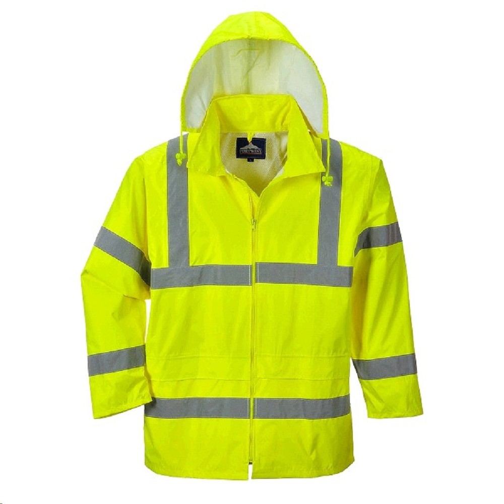 Reflexní bunda do deště, oranžová a žlutá, vel. M, L, XL, XXL, Tato bunda je navržena pro udržení viditelnosti, bezpečí a sucha při špatném počasí. Bunda je extrémně praktická a voděodolná. Bunda nabízí mimořádnou protihodnotu peněz a může být perfektně spojena s kalhotami H441. Toto zboží může být snadno srolované a uskladněné při momentálním nepoužívání. Materiál 100% polyester PVC, podšívka 100% polyesterová síťka.