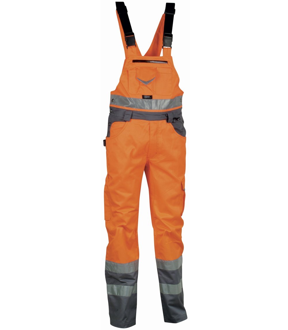 Domů Dům a zahrada Dílna Ochranné pomůcky Pracovní oděvy Reflexní pracovní kalhoty s laclem COFRA SPARK Barva: Reflexní oranžová, Velikost: 56 (V072_0_01_56)
