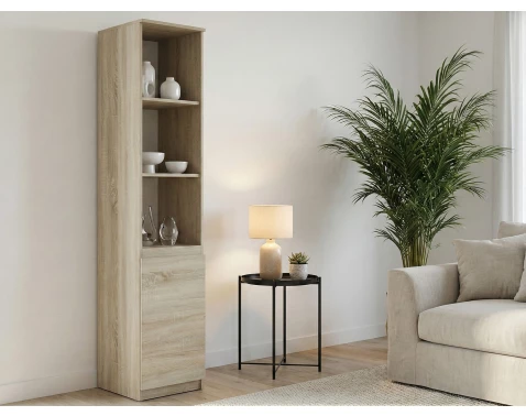 Vysoká vitrína Primo, dub riviera/bílá