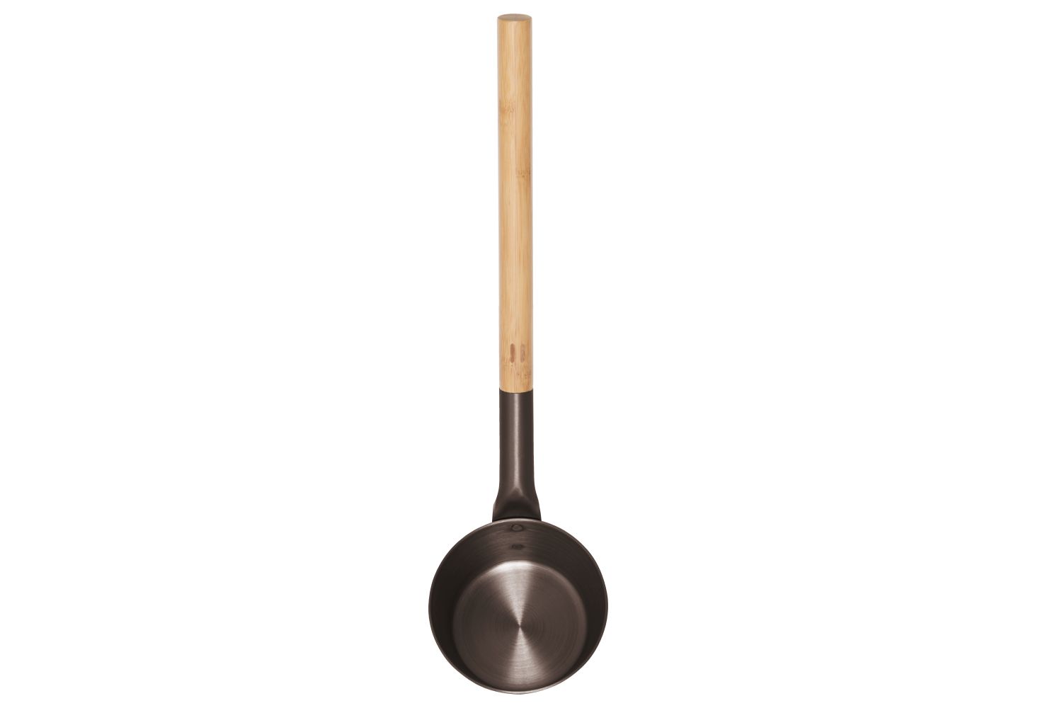 Krásná hliníková naběračka v přírodním designu. Rukojeť z bambusu. Vhodná pro saunové rituály, polévání kamenů.