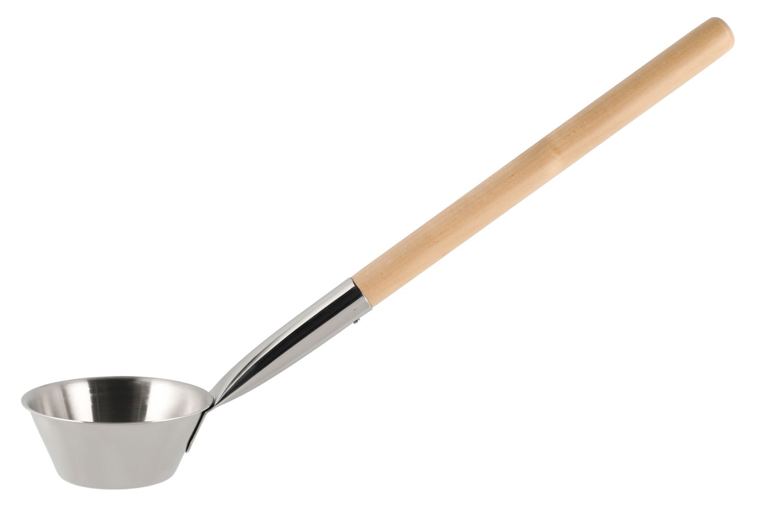 Naběračka do sauny pro polévání horkých kamenů. Elegantní kombinace kovu a dřeva. Navrhl designér Harry Koskinen.