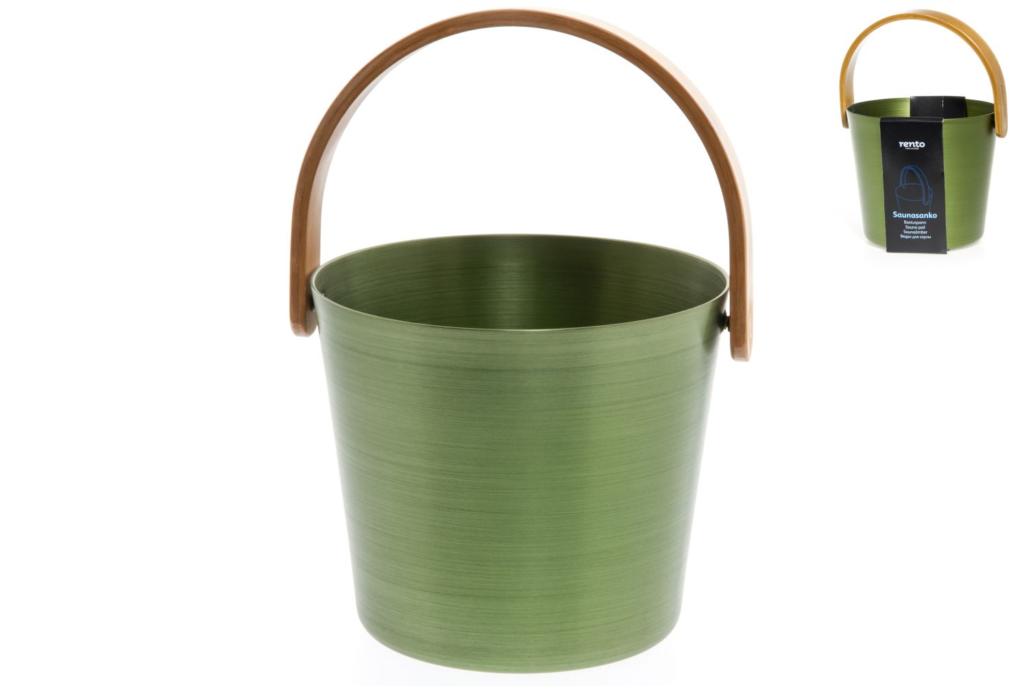 Elegantní saunový kbelík na vodu o objemu 5 litrů. Hliníkové tělo v tmavě zelené barvě. Čistý skandinávský design.