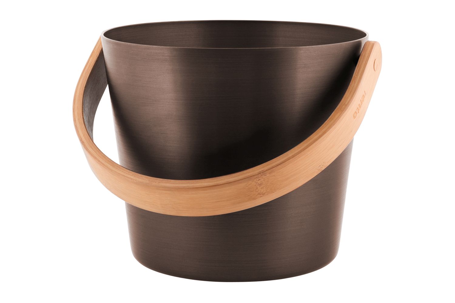 Elegantní saunový kbelík na vodu o objemu 5 litrů. Hliníkové tělo v tmavě hnědé barvě. Čistý skandinávský design.