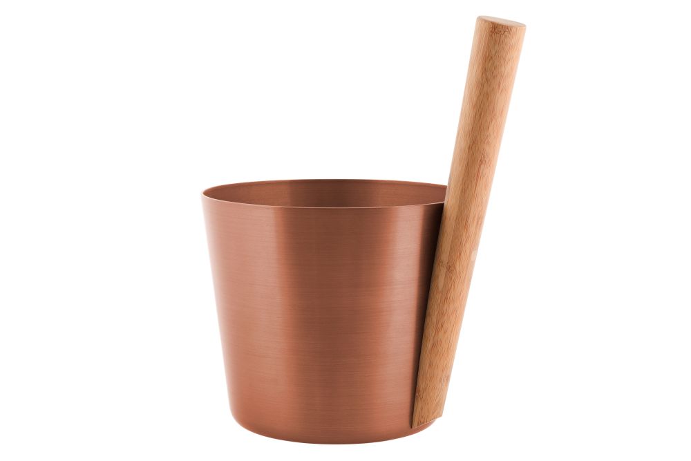 Nadčasový design kombinovaný s uživatelsky příjemnými tvary. Hliníkový kbelík v měděné barvě s rukojetí z tepelně upraveného bambusu.