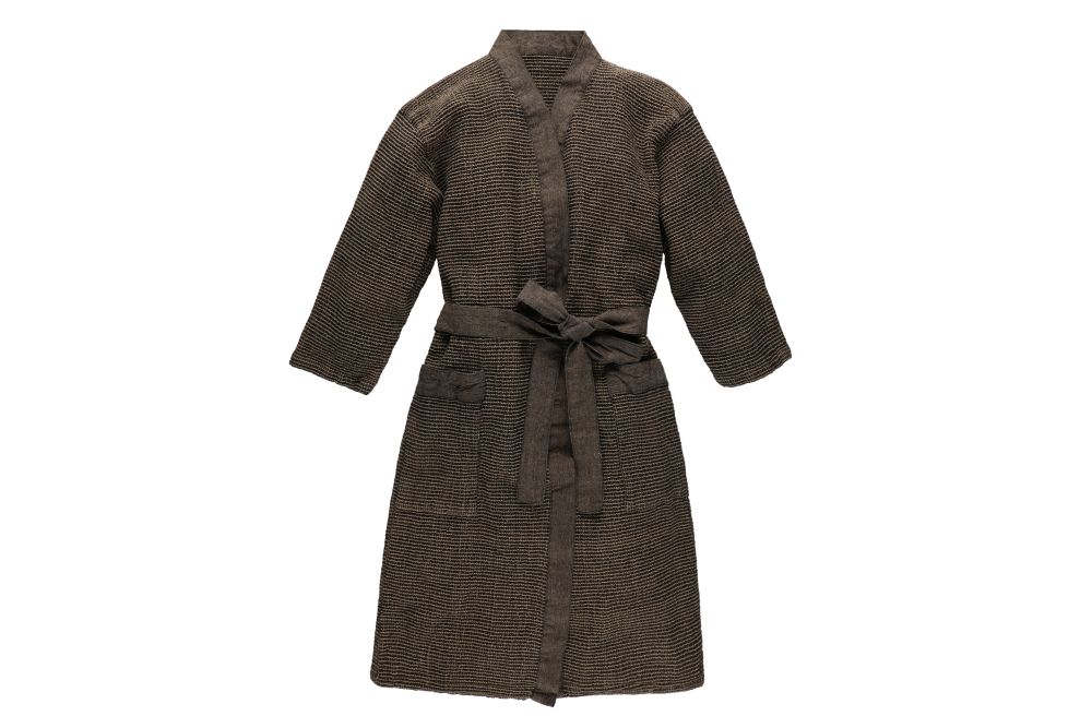 Pohodlný župan s páskem vyrobený z recyklované bavlny, která dodává látce přirozenou měkkost a zářivou texturu.