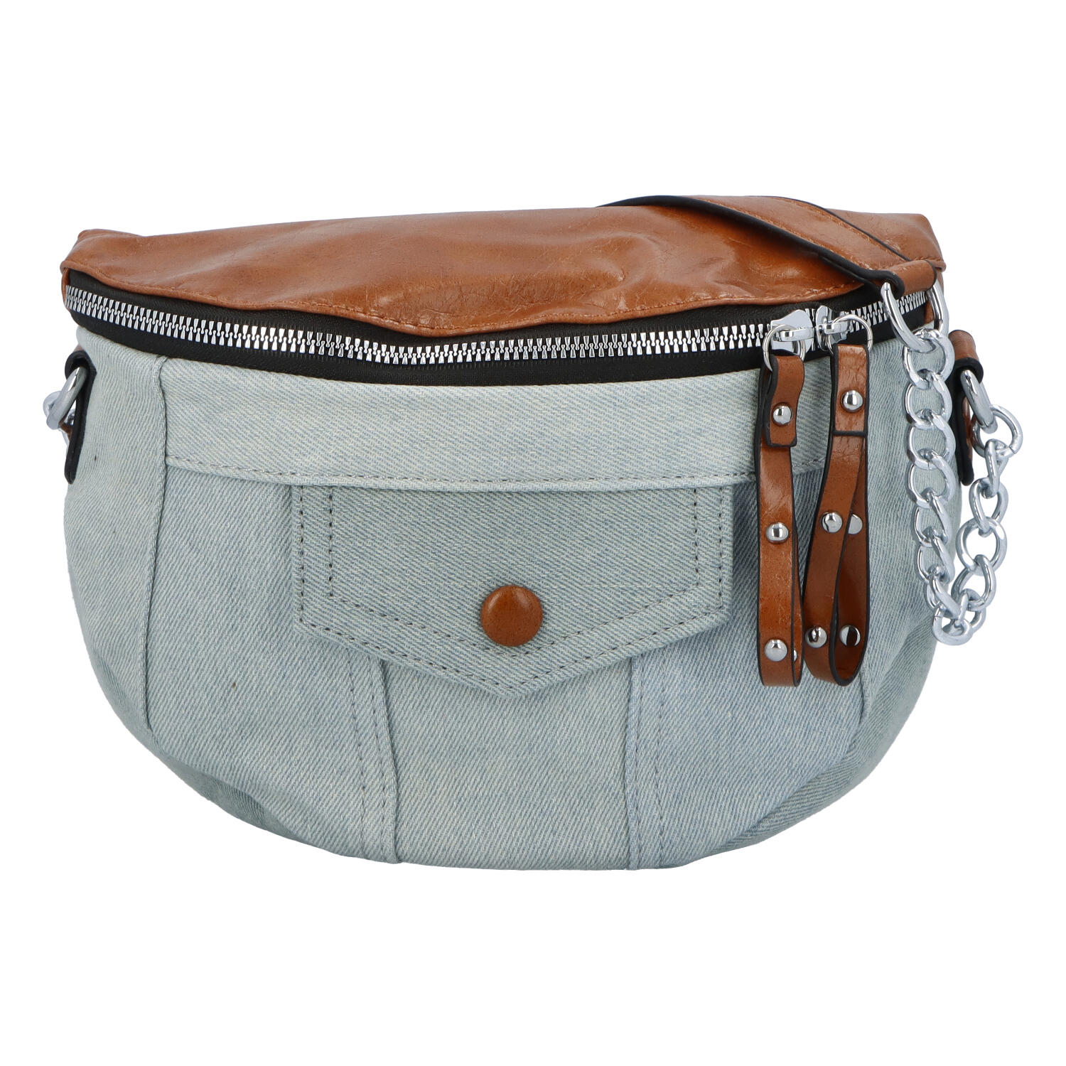 Zajímavá dámská crossbody či ledvinka pro váš volnočasový den. Nabízí hlavní kapsu na zip, pro uložení vašich nejdůležitějších věcí. Ucho je řetízkové a na připnutí látkový popruh.