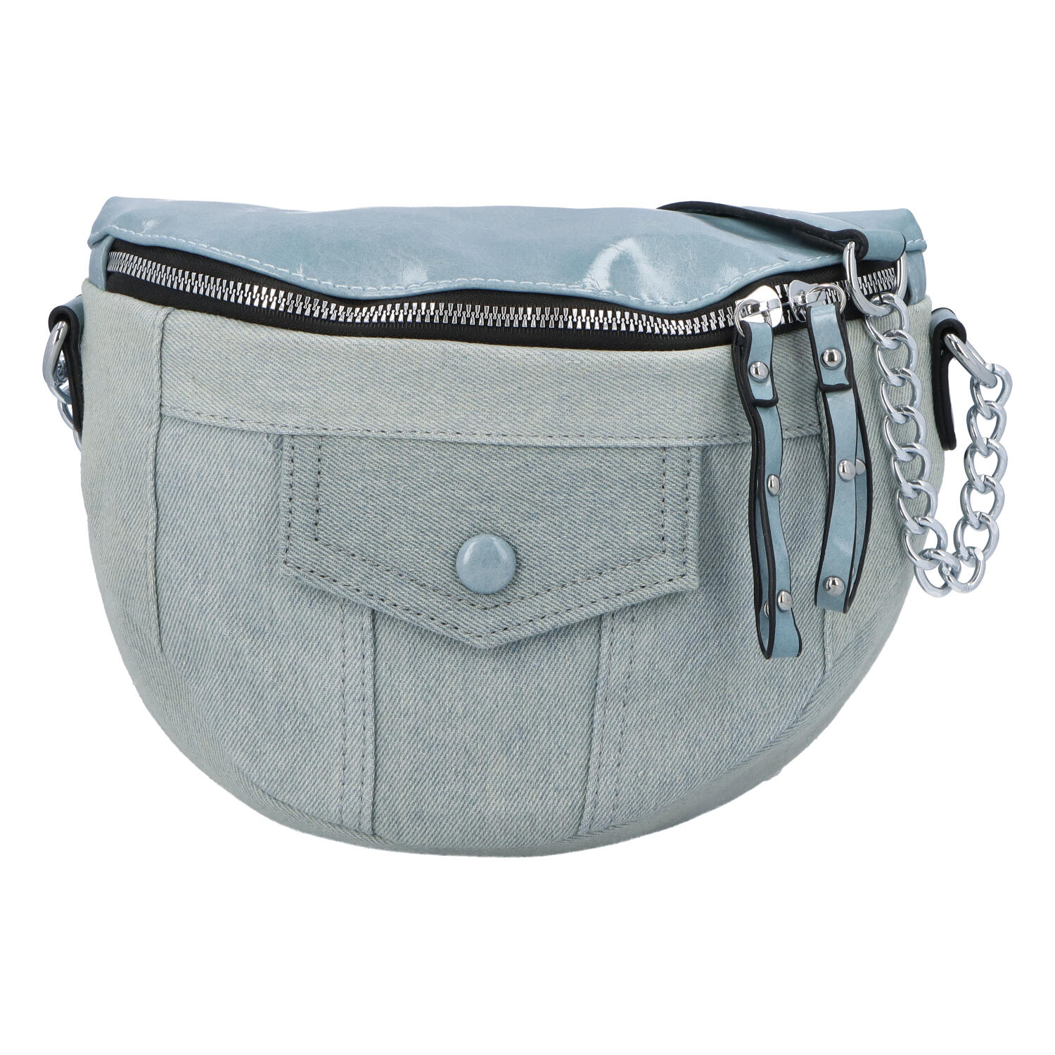 Zajímavá dámská crossbody či ledvinka pro váš volnočasový den. Nabízí hlavní kapsu na zip, pro uložení vašich nejdůležitějších věcí. Ucho je řetízkové a na připnutí látkový popruh.