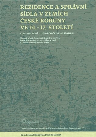 Ve dnech 29. - 31. března 2006 proběhlo v Clam-Galasově paláci v Praze již třetí česko-německo-polské kolokvium z cyklu Korunní země v dějinách českého státu, tentokrát na téma Rezidence a správní sídla v zemích České koruny ve 14. - 17. století. Autoři dvaceti sedmi příspěvků vzešlých z tohoto mezinárodního setkání zkoumají rezidenční a správní sídla v několika rovinách: správně-politické, reprezentativní, kulturně-společenské a regionální. Vedle panovnických rezidencí je značná pozornost věnována také ostatním zeměpanským a správním sídlům. Při hledání odpovědí na otázky týkajících se jejich charakteru a funkce se zřetelně ukazují rozdíly mezi jednotlivými zemskými celky Koruny království českého. Dále je zkoumána intenzita vztahů jednotlivých významějších sídel k pražskému centru a míra vědomí sounáležitosti vedlejších zemí k České koruně. Různé metodické přístupy jednotlivých autorů ke zvoleným tématům poskytují celou škálu pohledů na diskutovanou otázku.Problematika vymezení a specifikace rezidencí je v historiografii intenzivně diskutována již od 70. let minulého století a v posledních dvou desetiletích se jí ve větší míře věnují také čeští historikové. I po letech práce však badatelé napříč historickou obcí narážejí na terminologické problémy, které pramení především z teritoriálně-politických odlišností závislých na posunu v čase. Rozdílné názory existují i na obsah a užívání samotného termínu "rezidence", což je patrné zejména v německé a francouzské literatuře, se stejným problémem se však potýkají i historiografie česká, polská a další.