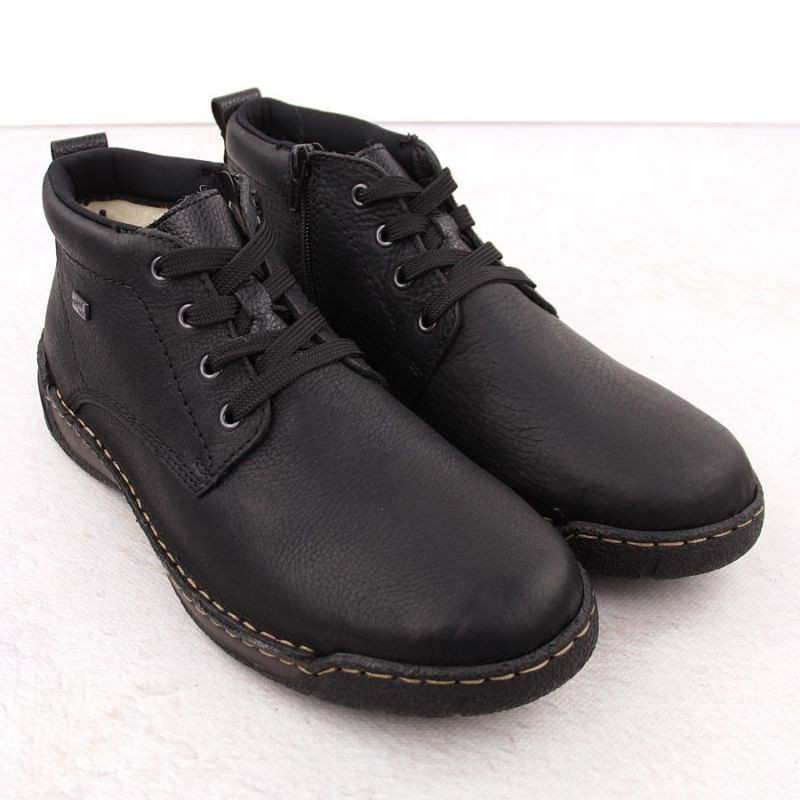 Zateplené boty Rieker M B0347-00 Vlastnosti: Obuv je vybavena membránou RIEKER-TEX, která zajistí zvýšenou ochranu proti vlhku, ochranu proti chladu a vlhkosti, volné dýchání a také pohodlí při používání. Podšívka zateplená ovčí kůží, stélka zateplená plstí. Barva: černá