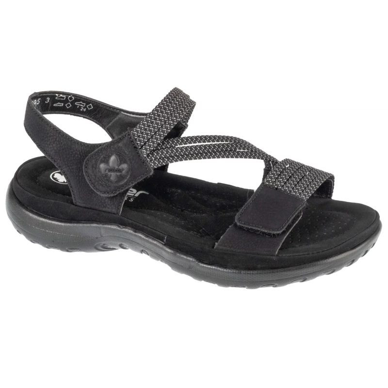 Vlastnosti: dámské sandály Rieker, ideální pro letní dny, otevřená konstrukce, zapínání na suchý zip, gumová podrážka s běhounem Materiál: materiál: syntetická kůže, látka Barva: syntetická tkanina: černá