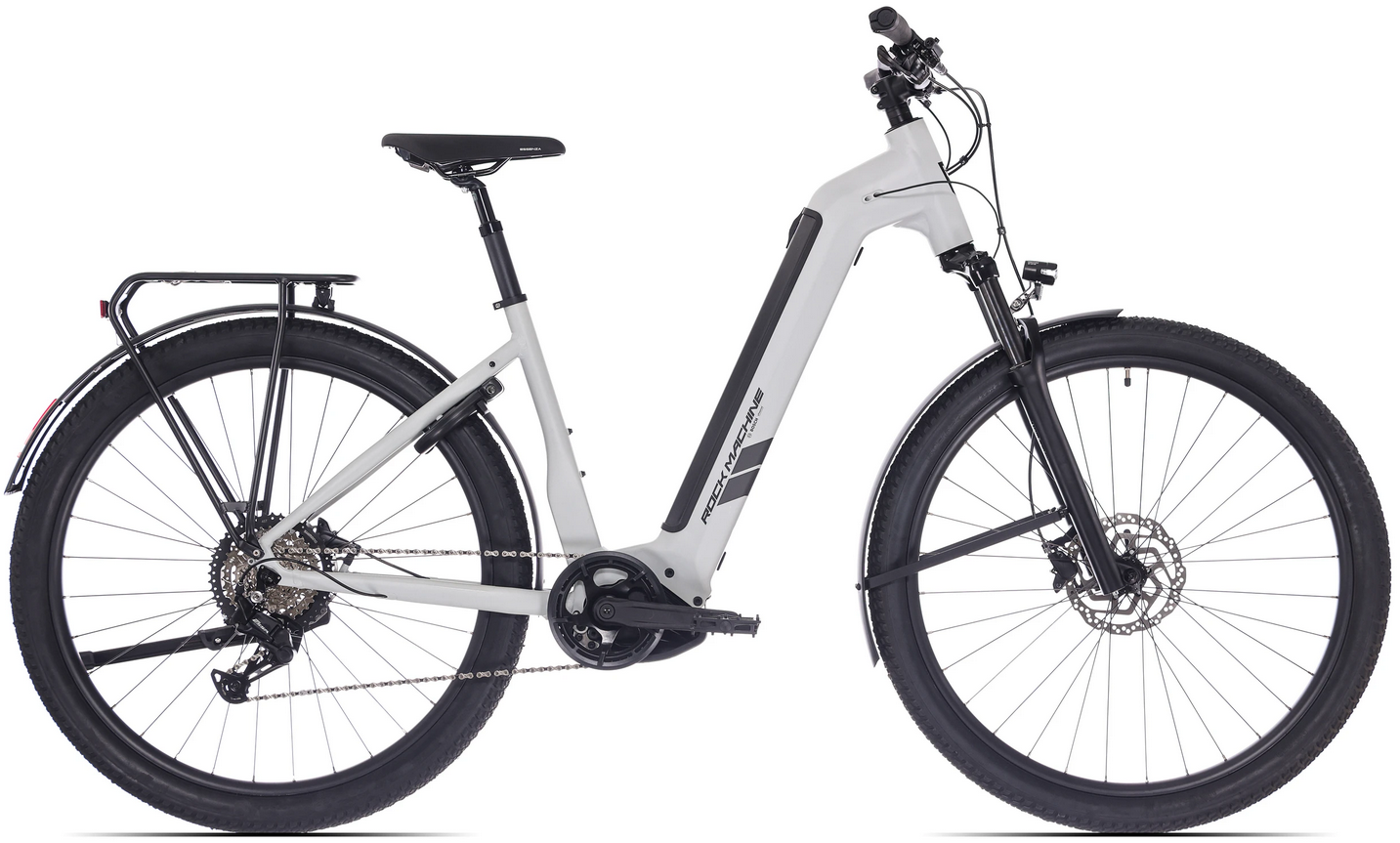 Zdarma dopravné, odborné seřízení a dárkový poukaz na nákup příslušenství 2.000,- Kč- kolo od nás je ZDARMA již kompletně seřízené a připravené k jízdě! ZÁRUKA NEJLEPŠÍ CENY! Nalezli jste někde lepší cenu? Napište si o ni! Horské elektrokolo Rock Machine eRokk B70T, pneu 29", model 2025, baterie 17,4Ah/625Wh, barva matná šedá Určení velikosti rámu podle výšky postavy: rám 18,5" (M) - pro výšku postavy od cca 168 cm do cca 185 cm rám 20" (L) - pro výšku postavy od cca 173 cm do cca 198 cm Ideální řešení mobility i využití volného času. Snadný nástup a výstup, vzpřímený posed zlepšuje přehled o situaci v provozu a šetří vaše záda. Nosič pro převoz až 27 kg, pláště s nízkým valivým odporem pro dlouhý dojezd a rychlým vzorkem pro jízdu mimo cesty. Pohon zajišťuje osvědčený pohon Bosch Performance Line CX Smart System s 85 Nm. S baterií o kapacitě 625 Wh ujede až 150 km. Pro jízdy za snížené viditelnosti je připraveno výkonné světlo AXA s výkonem 30 Luxů. Baterie 625 Wh / dojezd až 150 km, možnost dodatkové baterie Pohonná jednotka Bosch Performance Line CX Smart System s max. výkonem 600 W a 85 Nm Převody Shimano ESSA 1×8 s rozsahem 11–45 zubů Hydraulické brzdy Shimano a pedály s velkou kontaktní plochou pro maximální aktivní bezpečnost Jak vybrat vyhovující elektrokolo? Pár rad jak správně zvolit velikost, na co si dát při výběru pozor a mnohem více naleznete v naší poradně ZDE! Technická specifikace: Rám: tepelně vytvrzená hliníková slitina 6061-T6, s nízkým nástupemVelikost rámu: 18,5" (M)/ 20" (L)Vidlice: RST Blaze, Tapered, Lockout / 100 mmHlavové složení: Acros ZS56/ZS56Přehazovačka / měnič: SHIMANO ESSA RD-U2000Řazení: SL-M315-8RKliky s převodníkem: One1 EC39-BH4-F13-ISISBrzdy: Shimano MT200 Kazeta / vícekolečko: SHIMANO, ESSA, 8-SPEED, 11-45TŘetěz: KMC e8SŘídítka: Velobel, BB, ø 31,8 mm, š. 760, 40R, 13° BacksweepPředstavec: TDS-C342 Alloy, ø 31,8 mm, e45, +3°Sedlovka: Odpružená, One1 Alloy, ø 30,9 mmSedlo: Selle Royal Essenza ModeratePřední náboj: Shimano, HB-QC300Zadní náboj: Shimano FH-QC300Ráfky: Stars J30Pláště: Rubena Cheetah 29×2,35"Počet rychlostí: 1×8Hmotnost: 28.00 kgNosnost: 150 kgMotor: Bosch Performance Line CX, 85 Nm (250 W, 36V), Smart System, 400% podporyBaterie: BOSCH BATTERY POWER TUBE 17,4Ah/625WhDisplej: Bosch Purion 200 Smart SystemNabíječka: Bosch 2A chargerMax. dojezd: reálný dojezd cca 150 km Poznámka: Změna technické specifikace vyhrazena.