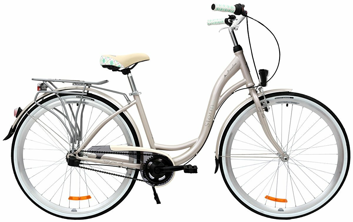 Zdarma dopravné, kompletní montáž a odborné seřízení - kolo od nás je ZDARMA již kompletně seřízené a připravené k jízdě! ZÁRUKA NEJLEPŠÍ CENY! Nalezli jste někde lepší cenu? Napište si o ni! Městské kolo STORM BARCELONA 28", barva capuccino Vhodné velikosti rámů (podle výšky postavy): rám 17" (M) - pro výšku postavy od cca 155 cm do cca 180 cm Hledáte spolehlivé a elegantní kolo, které zvládne každodenní cesty do práce, nákupy i víkendové projížďky? Městské kolo STORM Barcelona v atraktivní barvě Capuccino (světle hnědá) kombinuje retro styl s moderním komfortem. Je navrženo s důrazem na snadný nástup a bezstarostný provoz – ideální pro každou městskou cyklistku. Jak vybrat vyhovující trekingové kolo? Pár rad jak správně zvolit velikost, na co si dát při výběru pozor a mnohem více naleznete v naší poradně ZDE! Technická specifikace: Rám: Hi-TenVelikost rámu: 17" (M)Vidlice: Přehazovačka / měnič: Řazení: Shimano Nexus Revoshift 3 rychlostníPřevodník: kliky s převodníkem 38 zubůBrzda přední: Alu V-brake AlhongaBrzda zadní: Alu V-brake AlhongaStředové složení:Vícekolečko: Řetěz: Představec: Sedlovka: Sedlo: gelové STORMNáboj: náboj Shimano Nexus 3 rychlostní s planetovou převodovkouRáfky: dvojkomorové ráfky Alu STORMPláště: CST 28x1,75 s bílým bokemPočet rychlostí: 1x3Hmotnost: Nosnost: 120 kgPoznámka: blatníky, zadní nosič, osvětlení, kryt řetězu, stojan a zvonek součástí kola Změna technické specifikace vyhrazena.