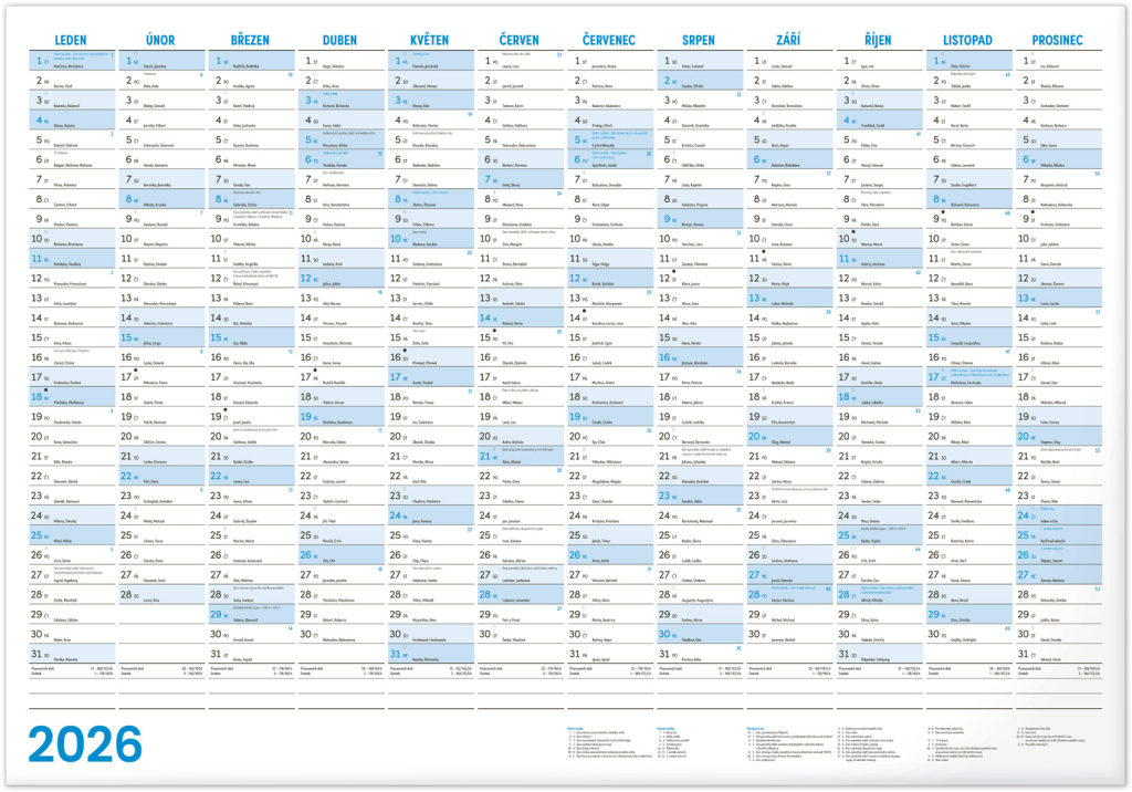 Praktický roční kalendář pro rychlé zaznamenání a vyhledání poznámky. Obsahuje kalendárium s českými jmény a světovými svátky na bílém pozadí. Zakupte produkt Roční kalendář 2026 NOTIQUE A2, 59,4 x 42 cm z kategorie Kalendáře, diáře | Nástěnné kalendáře 2026 | Tříměsíční a jednolisté nástěnné kalendáře 2026 od výrobce Presco Group za cenu 57 Kč.