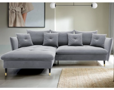 Rohová sedací souprava Glam, světle šedá látka, levý roh