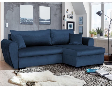 Malá rohová sedačka v zaoblených tvarech poskytne pohodové sezení i v nevelkém prostoru obýváku. Očalouněna sametově měkkou látkou v barvě modrá. Otoman lze umístit na pravou nebo levou stranu - dle prostorových možností. Kromě úložného prostoru pod sedákem nabízí i rozklad na příležitostné spaní třeba pro vaši návštěvu.