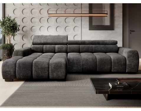 Máte-li rádi moderní design, komfortní sezení a zároveň praktickou funkčnost, tak pak je právě tato sedačka pro vás. Tato stylová rohová sedačka je očalouněna strukturovanou tkaninou v barvě grafitová šedá a zaujme výrazným prošíváním, které kopíruje tvary sedačky. Sedačka s otomanem tvoří levý roh. Prakticky polohovatelné zádové opěrky doplňuje sedák s elektrickým polohováním - pomocí tlačítek si tak snadno přizpůsobíte hloubku sedu podle aktuální potřeby, případně si vytvoříte místo pro pohodovou relaxaci anebo prostor pro příležitostné spaní. Tato sedačku dokonale doplní interier moderního bytu.