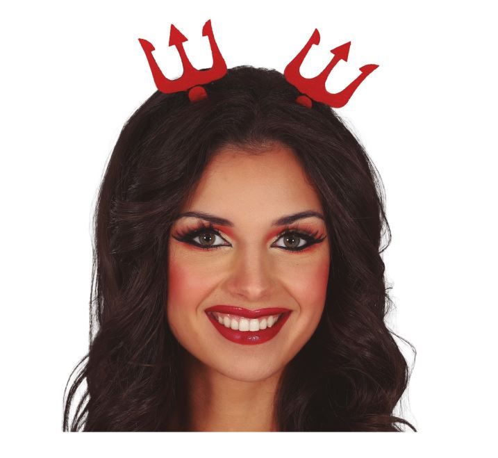 Čelenka zdobená červenými vidlemi , která je perfektním doplńkem na mikulášskou nebo vánoční párty!
