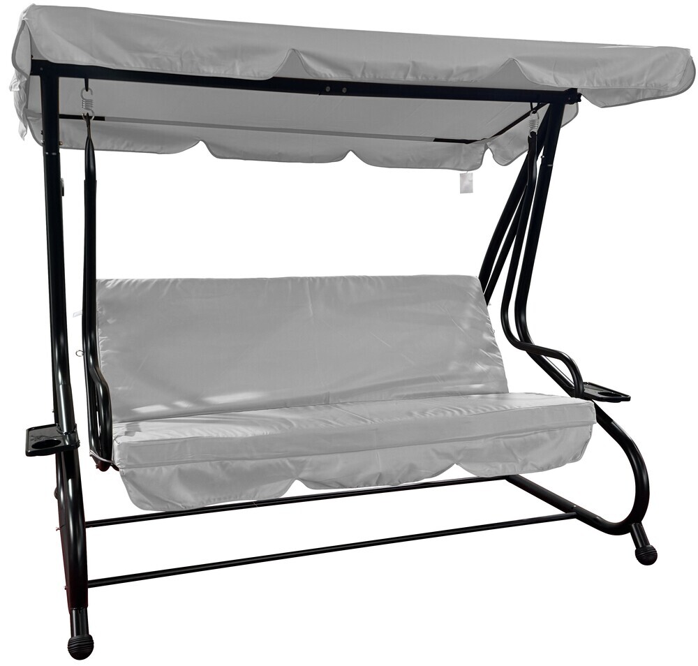 Ocelová konstrukce ošetřena práškovou barvou, podušky (voděodolný polyester 160 g), výplň polyesterová vata 8 cm, stříška (voděodolný polyester 180 g), pro 3 osoby