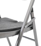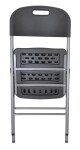 Skládací křeslo z velice pevného materiálu HDPE s ocelovou konstrukcí.