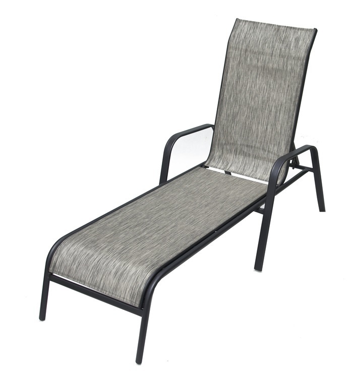 Elegantní polohovací lehátko se stabilní kovovou kostrou. Sedák a opěrná plocha je z textilie.