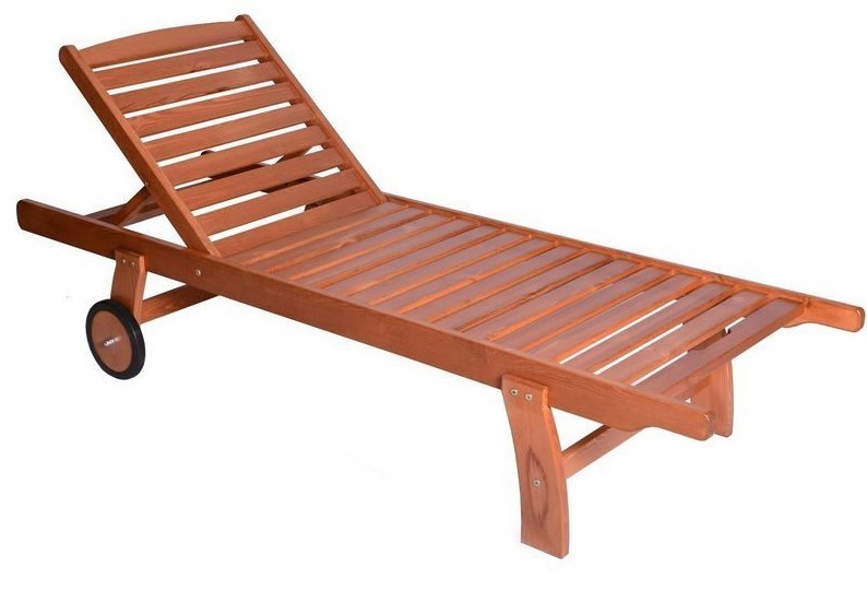 Stabilní polohovací zahradní lehátko z lakovaného borovicového dřeva.