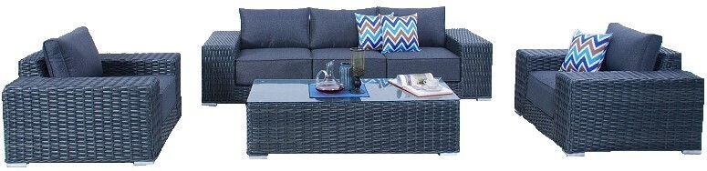 Luxusní sestava nábytku z umělého ratanu a hliníkové kostry.