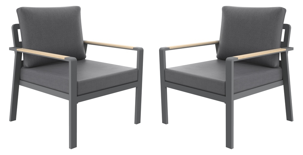 Luxusní hliníková křesla v černém provedení, která skvěle zapadnou do každého exteriéru či interiéru.