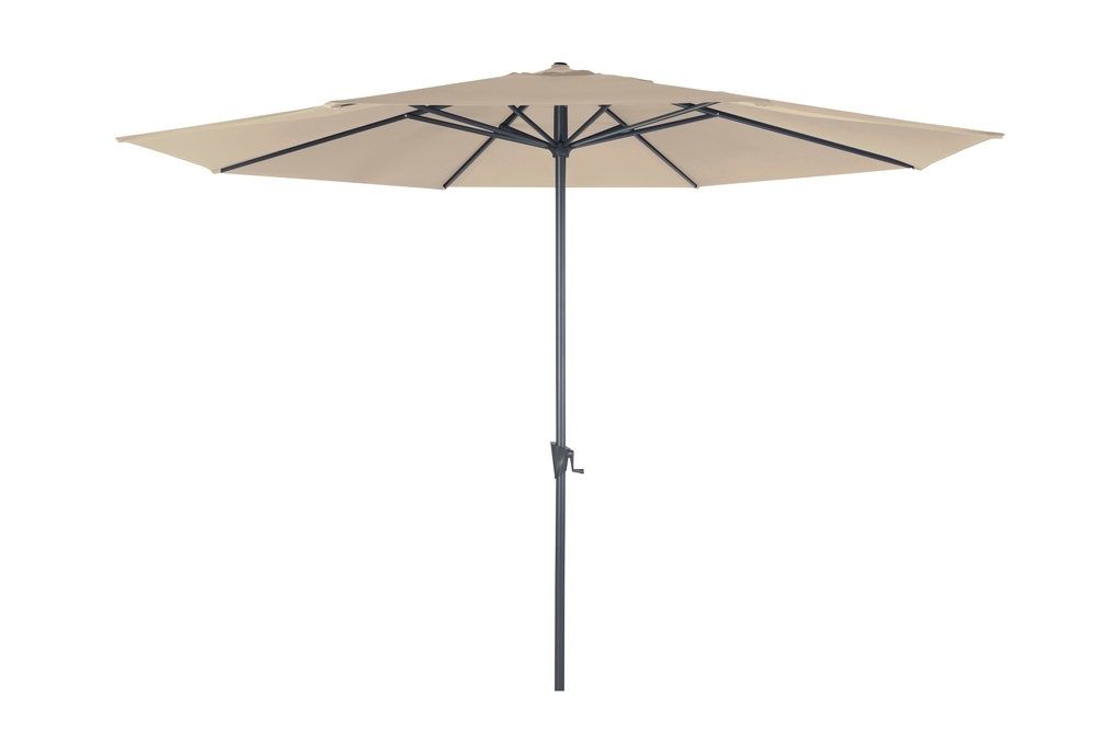 Velký, prostorný, osmiramenný slunečník s moderním designem a pevnou kovovou konstrukcí.