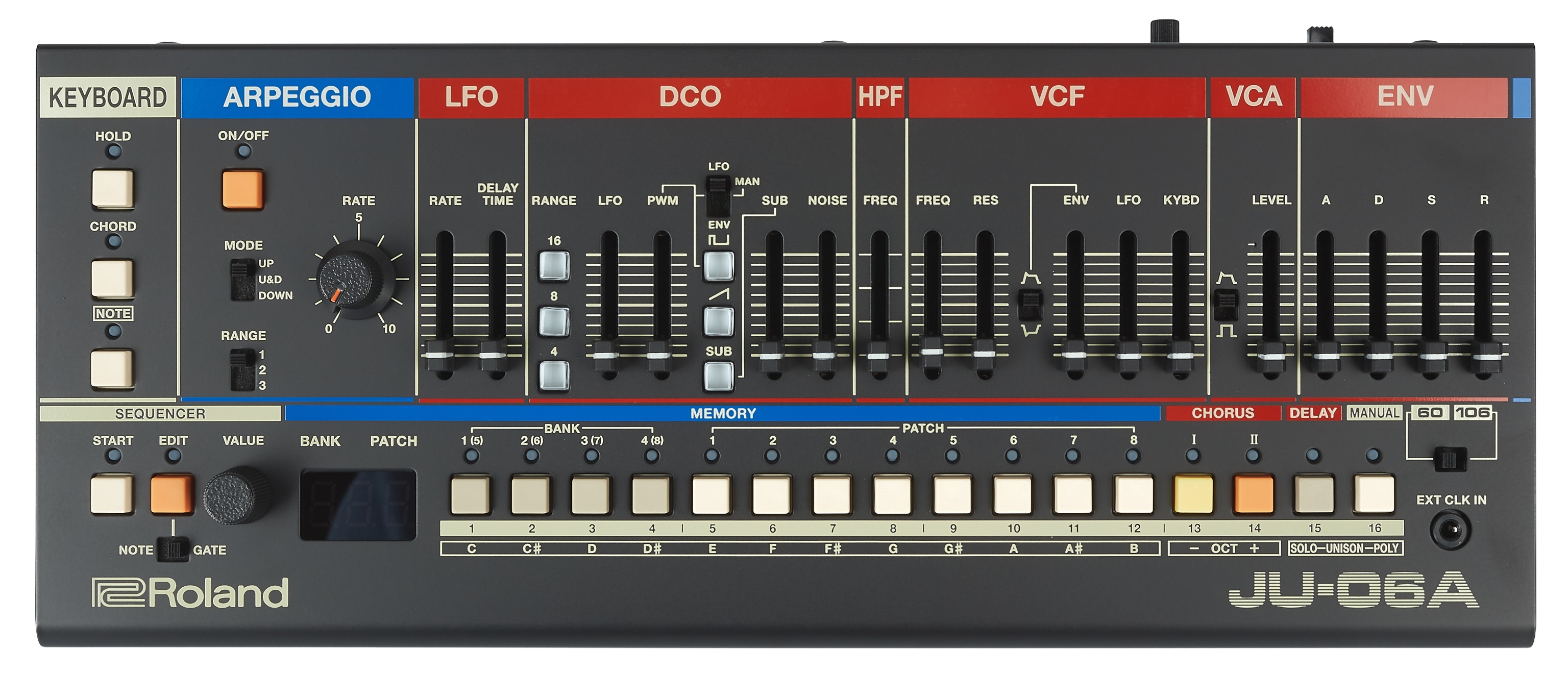 Syntezátor Vše, co milujete na retru jménem JUNO – v jediném syntezátoru Pro mnohé jsou retro syntezátory Roland JUNO definicí zvuku osmdesátek. Na trhu s použitým zbožím jsou modely stále žádanější a mnozí hráči na klávesy je buď chtějí, nebo litují, že ten svůj kdysi dávno prodali. S JU-06A získáte zvuk, vzhled i funkce modelů JUNO-60 a JUNO-106 v jediném spolehlivém, moderním nástroji, který si můžete brát všude s sebou. JUNO vždy s sebou JU-06A je kompaktní, avšak i při