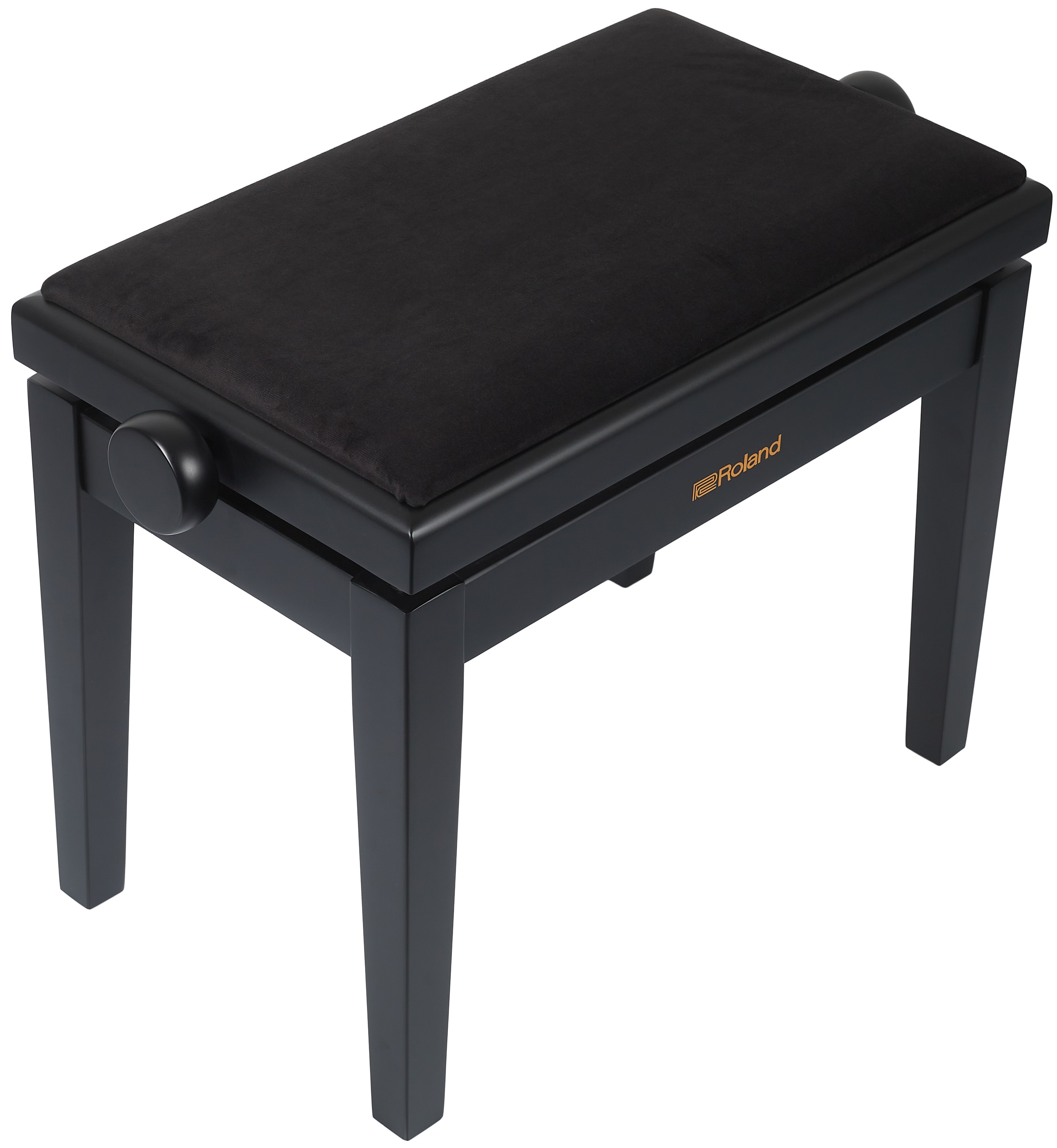 Klavírní stolička Zpříjemněte si hodiny strávené u klavíru pomocí této kvalitně a elegantně zpracované stoličky. Pianisté zajisté ocení možnost nastavení výšky sedačky, polstrovaný sedák potažený velurem a konstrukci z masivního dřeva, díky níž vám bude stolička sloužit roky. Roland RPB-220BK není jen praktický pomocník - díky vytříbenému designu a povrchové úpravě v saténově černém provedení se stane ozdobou každého interiéru.