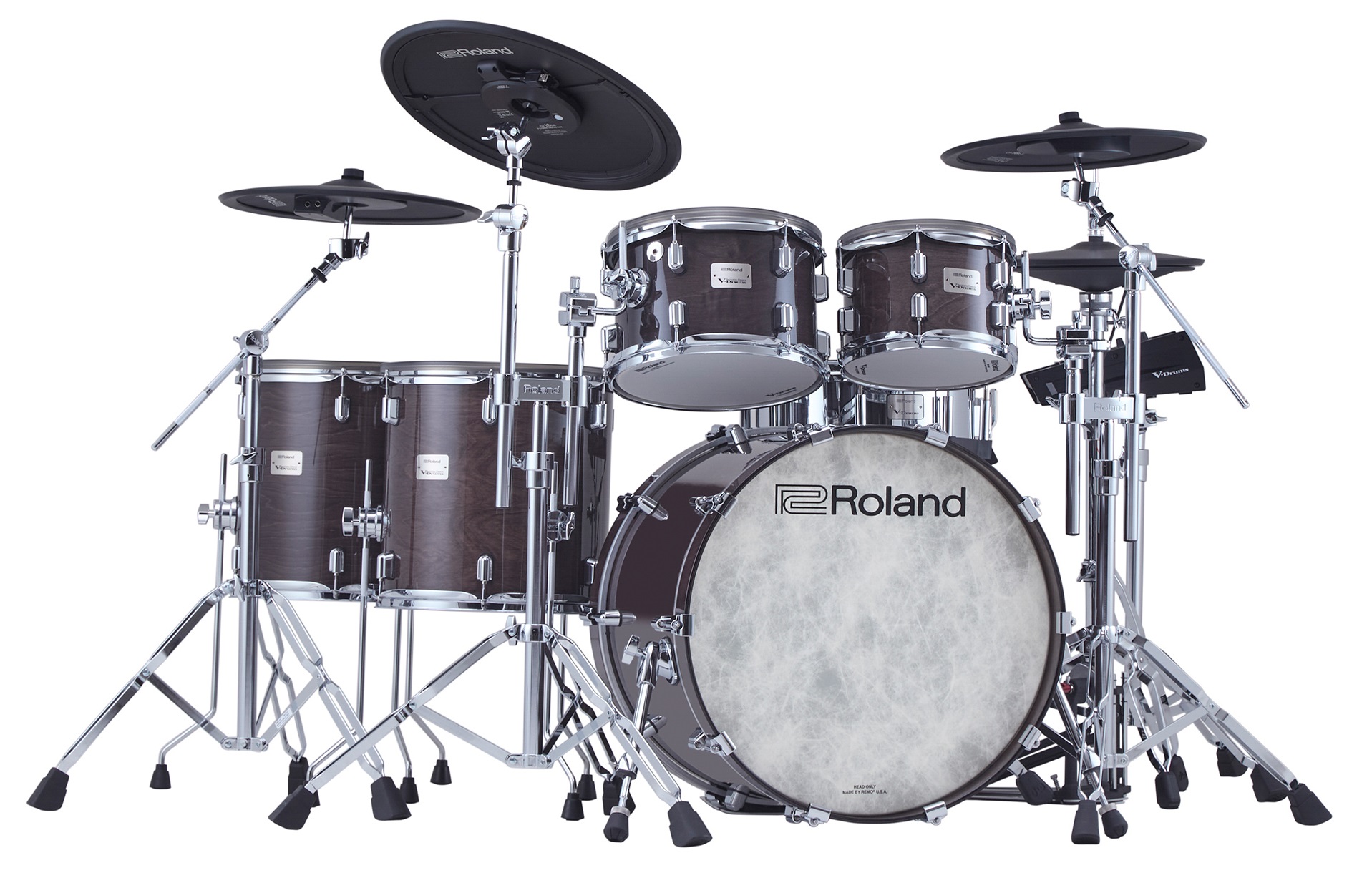 Elektronická bicí souprava Bicí souprava Roland VAD716 se sice na první pohled jeví jako akustická, ale nenechte se zmást. Jedná se o soupravu ze série V-Drums Acoustic Design, která věrně imituje estetiku a zvukovou odezvu akustických bubnů, ale zároveň nabízí všechny výhody digitálních bicích technologií. Její nedílnou součástí jsou tyto komponenty: zvukový modul V71, kopák, snare, dva tomy a dva floor tomy imitující vzhled akustických bubnů, digitální činely hi-hat, ride