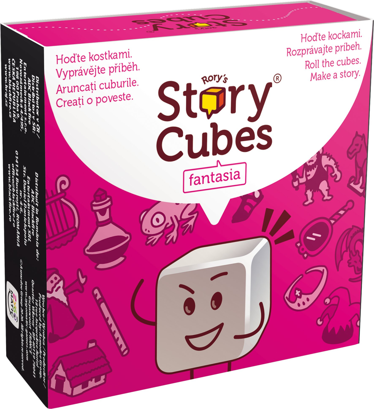 Nechte se díky symbolům na kostkách unášet na vlně fantazie a vyprávějte si ty nejúžasnější příběhy! Příběhy z kostek je hra, ve které zábavným způsobem hráči zapojí své kreativní myšlení a vytváří vlastní příběhy. Neexistuje žádný správný nebo špatný způsob hraní, jde jen o zábavu při sdílení příběhů s rodinou a přáteli. Stačí hodit kostkami, začít slovy „Bylo nebylo ...“ a rozvinout křídla své představivosti! Hra slouží jako kreativní a vzdělávací nástroj ke stimulaci představivosti, pomáhá rozvíjet jazyk, vylepšit slovní zásobu a propagovat dovednosti při řešení problémů pro věkovou kategorii od 6 let. Díky malému rozměru (80 x 75 x 30 mm) a magnetické krabičce lze vzít kamkoliv s sebou. Proto je hra vhodná na cesty, při čekání v restauraci, do družiny nebo na přestávku ve škole, na prolomení ledů ve společnosti, pro vytváření nových nápadů nebo na pomoc s učením jazyků. Hra obsahuje 9 kostek o rozměrech 19 mm, každá se 6 unikátními vyraženými obrázky, celkem tedy 54 obrázků na téma - Fantazie a krátká a jednoduchá pravidla.