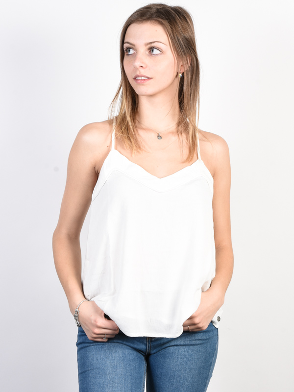 Bílé lehoučké tílko Roxy Off We Go Marshmallow s tenkými ramínky perfektně padne nejen ke kraťasům. Materiál: 100% viskóza Specifikace: - lehká příjemná viskóza - pohodlný střih - tenká nastavitelná ramínka