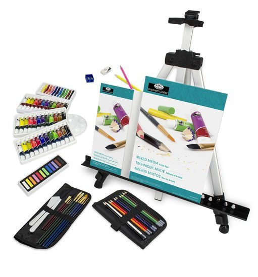 Obsah balení:12 ks akrylových barev v tubě (12ml)12 ks olejových barev v tubě (12ml)12 ks avarelových barev v tubě (12ml)12 ks suchý pastel12 ks olejový pastel12 akvarelových pastelek3 ks štětců se zlatými, taklonovými štětinkami3 ks štětců s bílými vlasy3 ks štětců s přírodními štětinami3 ks umělohmotné špachtle2 ks nataženého plátna2 ks grafických tužek1 ks pouzdro na štětce1 ks pouzdro na tužky1 ks 10-místní palety1 ks struhadla1 ks gumy1 ks blok pro akvarel1 ks hliníkového stojanu1 ks cestovatelské tašky