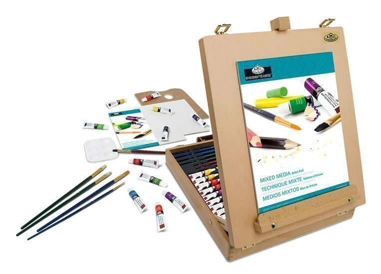 Tato sada obsahuje 48 kusů výtvarných uměleckých potřeb, které jsou ideální pro začátečníky, studenty nebo umělce. Obsahuje široký sortiment tužek, pastelek a barev. Odkládací kufřík se promění na robustní stolní stojan. Sada obsahuje: 12 akrylových barev (12 ml), 12 olejových barev (12 ml), 12 akvarelových barev (12 ml), 2 umělecké plátna, 2 ks zlatých taklonových štětců, 2 ks bílých taklonových štětců, 2 ks černých taklonových štětců, 1 plastová paleta se šesti jamkami, 1 dřevěná paleta, 1 ks skicák A4 pro různé techniky, 1 stojan / kufřík