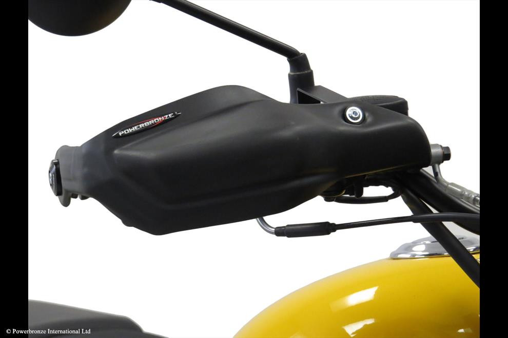 Kvalitní kryty rukou na motorkuod renomované britské značky Powerbronzepředstavují ideální řešení pro jezdce, kteří chtějí zvýšit komfort a ochranu rukou při jízdě na motocyklu. Tyto motocyklové handguardychrání ruce před větrem, chladem, deštěm i drobnými nečistotami z vozovky, což oceníte především při delších jízdách nebo v chladnějším počasí. Jsme výhradním dovozcem Powerbronze, díky čemuž u nás získáte originální produkty této známé britské značky s garancí kvality, kompatibility a dostupnosti náhradních dílů. Ochrana rukou proti větru a počasí Kryty rukou na motocykl jsou jedním z praktických doplňků, které výrazně zvyšují komfort jízdy. Pomáhají omezit proudění vzduchu na ruce jezdce, čímž snižují pocit chladu při vyšších rychlostech. Zároveň chrání ruce před deštěm, hmyzem nebo drobnými kamínky z vozovky. Díky modernímu designu navíc kryty rukou Powerbronzeskvěle doplní vzhled sportovních, naháčových i cestovních motocyklů. Kvalitní materiály a precizní zpracování Motocyklové kryty rukou Powerbronzejsou vyrobeny z odolného ABS plastu, který nabízí ideální kombinaci pevnosti, nízké hmotnosti a dlouhé životnosti. Materiál je zároveň odolný vůči povětrnostním vlivům a běžnému opotřebení při každodenním používání motocyklu. Součástí balení jsou také černé eloxované hliníkové koncovky řídítek Powerbronze, které zajišťují pevné uchycení a zároveň dodávají motocyklu elegantní sportovní vzhled. Snadná montáž Velkou výhodou těchto handguardů na motorkuje velmi jednoduchá instalace. Kryty rukou se montují pomocí dodané montážní sady přímo na řídítka motocyklu. Balení obsahuje také přehledný návod, takže instalaci zvládnete během několika minut.Hlavní výhody krytů rukou Powerbronze ochrana rukou proti větru, dešti a nečistotám větší než standardní chrániče pro vyšší účinnost vyrobeno z odolného ABS plastu černé anodizované hliníkové koncovky řídítek moderní matně černý design jednoduchá a rychlá montáž včetně montážní sady a návodu originální produkt Powerbronze – výhradní dovozce